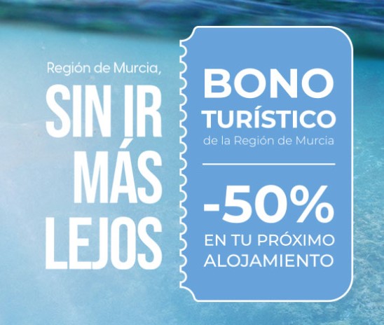 Solamente tienes que solicitar un código del bono turístico de la Región de Murcia en https://www.turismoregiondemurcia.es/es/bono_turistico/ y proporcionárnoslo en el momento de reservar tal y como detallamos a continuación. ¡Obtendrás el 50% de descuento en tu estancia!